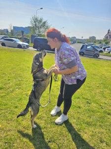 Alice hat eine nette ausgeglichene Art. Sie ist mit allen verträglich und sehr freundlich. Sie mag jeden Menschen. Mit ihren Artgenossen spielt sie gern. Die junge Hündin eignet sich ideal als Familienhund und auch für Anfänger. Natürlich braucht sie noch eine gute Erziehung, aber sie ist intelligent, lernbereit und möchte gefallen.