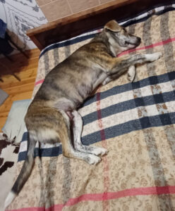 Fiona ist eine starke Hündin, die trotz widriger Umstände ihrem Nachwuchs Liebegeschenkt und gut versorgt hat. In der Pflegestelle erweist sie sich als sehr menschenfreundlich und sanft. Sie ist absolut stubenrein und hatte ganz sicher mal ein gutes Zuhause. Sie hat auch gelernt an der Leine zu laufen – ist aber eine ruhige und gemütliche Hündin, die gern kuschelt und schmust.