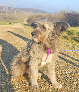 Kelly wurde im Juli 2023 geboren und ist 55 cm groß. Sie hat ein graues kurzes Strubbelfell. Im Tierheim wurde sie gechipt, geimpft, kastriert und von Parasiten befreit. Vor ihrer Ausreise bekommt sie noch einen Test auf Herzwürmer.